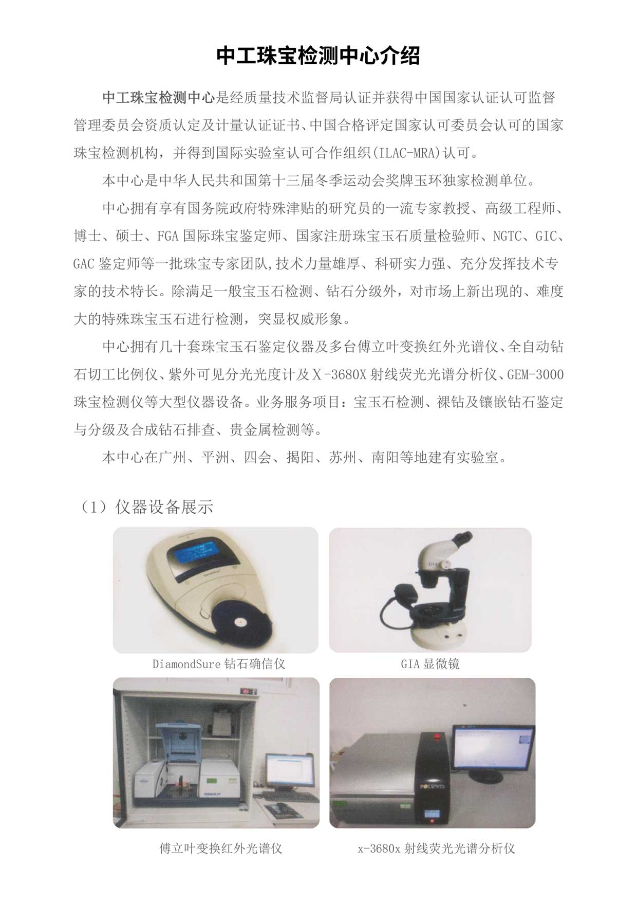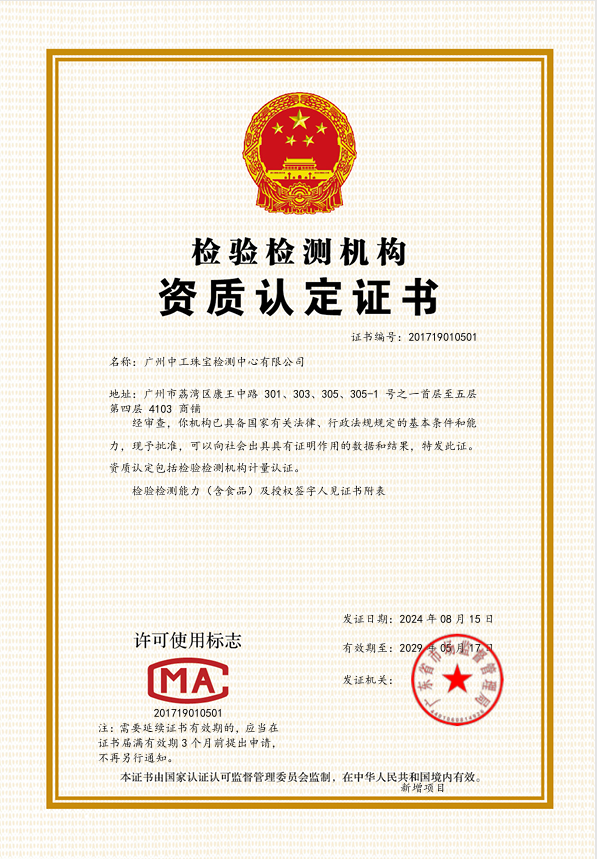 本中心是经质量技术监督局认证并获得中国国家认证认可监督管理委员会资质认定及计量认证证书、中国合格评定国家认可委员会认可的国家珠宝检测机构,并得到国际实验室认可合作组织(ILAC-MRA)认可的权威实验室,凭借其卓越的检测技术、深厚的专家团队和丰富的实践经验,赢得了广大消费者和社会各界的广泛认可和赞誉,被国家授权邀约对冬季运动会奖牌用玉进行专业检测,是业内名列前茅的检测实验室,而本中心将继续秉持着初心,为珠宝玉石检测事业的发展,不断贡献力量。
